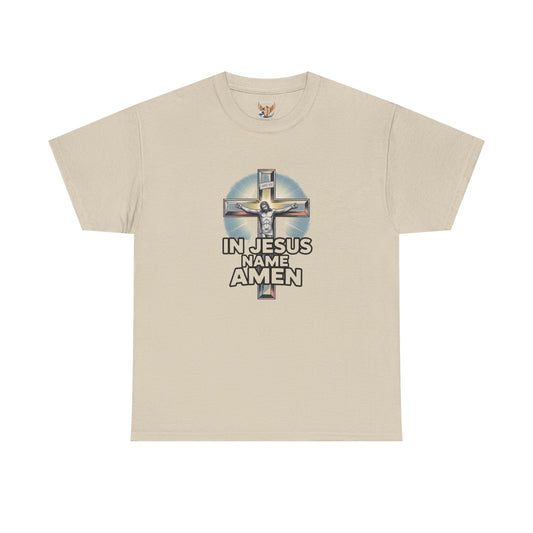 Christian T-Shirt — In Jesus Name Amen' Cross Graphic Tee Divine Faith Armor