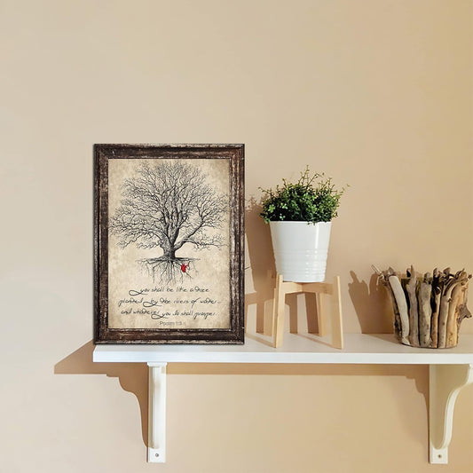 Christian Wall Art Scripture Bible Verse Wall Decor Vintage Tree Inspirational Quotes Canvas Print Painting Motivational Poster Retro Framed Artwork for Bedroom Living Room Church 12X16 Inch