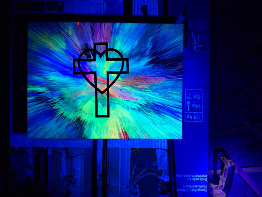 SHINE HIS LIGHT WITH!! DIVINE FAITH 714 original spin/pour art 9"x12" #600