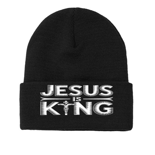 JESUS IS KING Beanie – Christian Cuffed Knit Hat | Divine Faith Armor