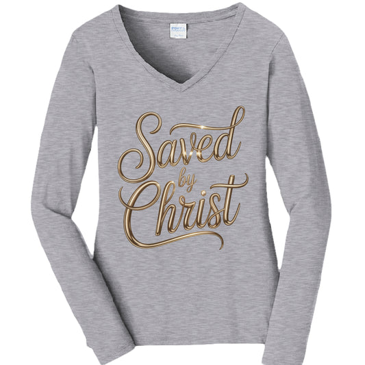 Saved By Christ Ladies Long Sleeve V-Neck – Divine Faith Armor