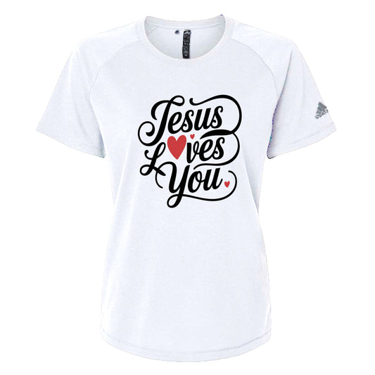 Jesus Loves Y❤️U Elegant Script Women’s Christian T-Shirt Divine Faith Armor