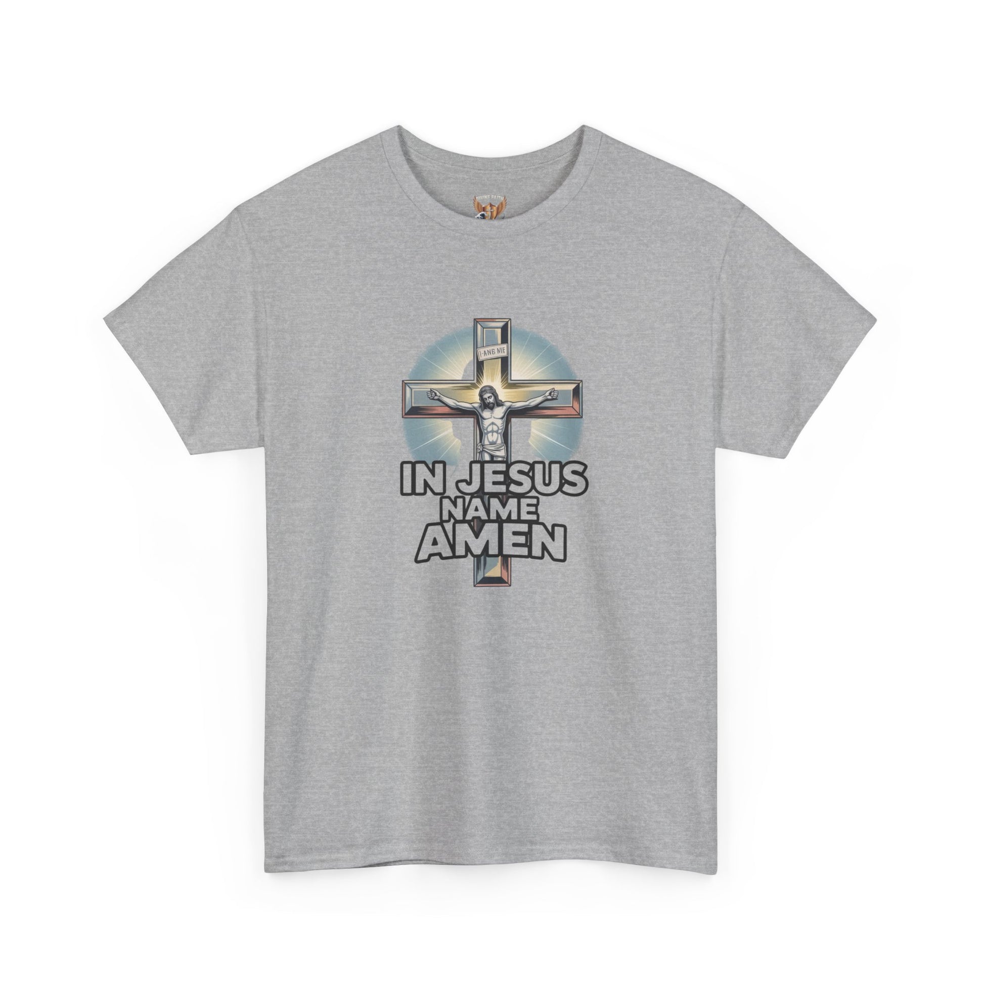 Christian T-Shirt — In Jesus Name Amen' Cross Graphic Tee Divine Faith Armor