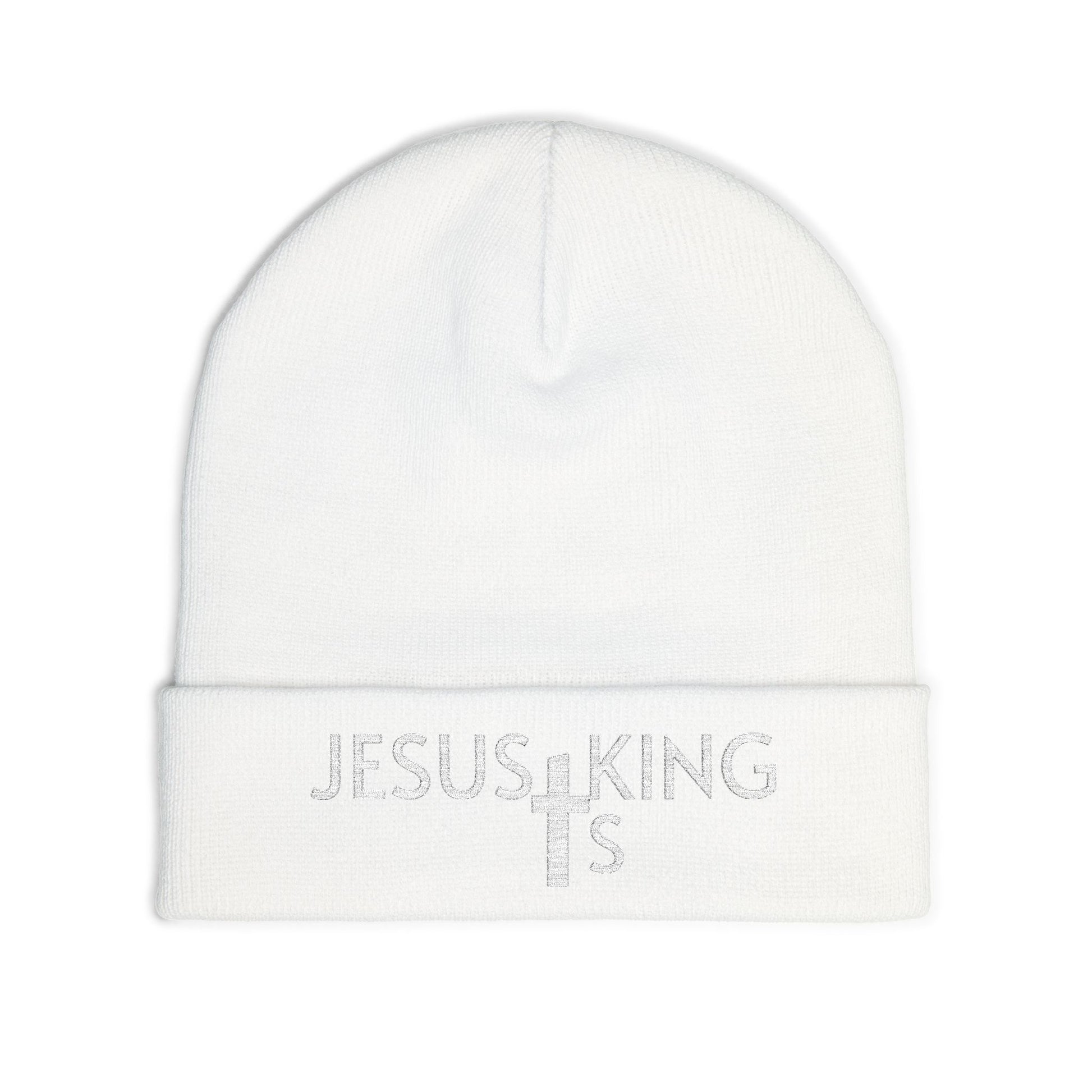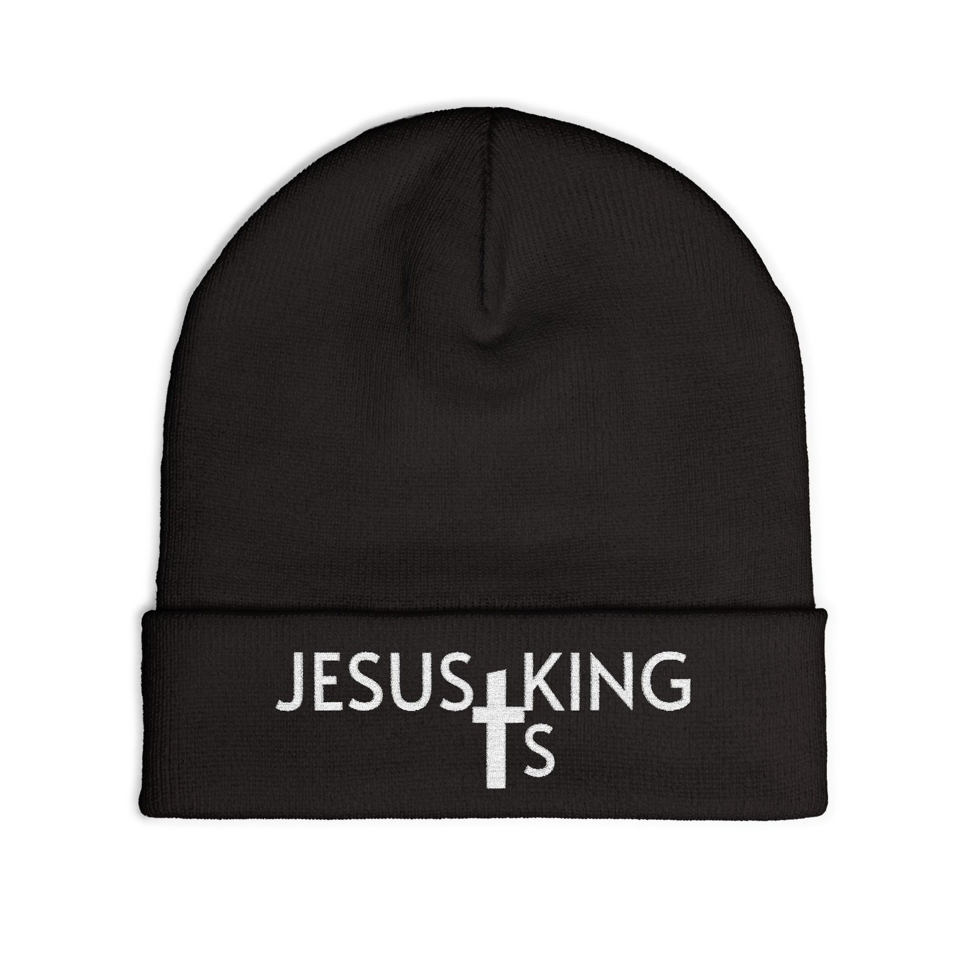 Jesus Is King Embroidered Knit Beanie — Christian Faith Winter Hat